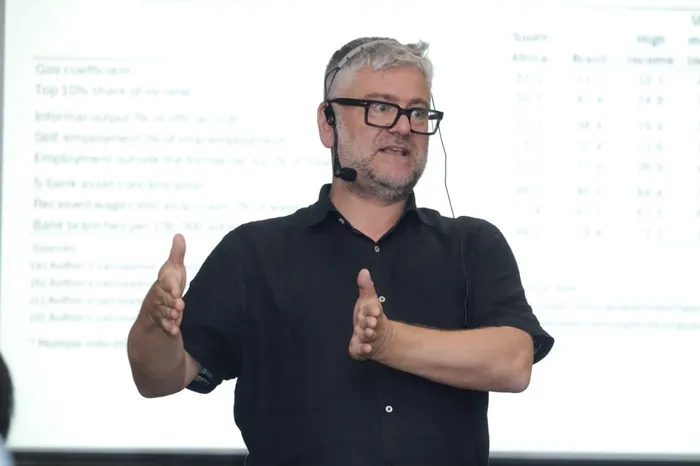 Following the Consul General’s address, economist Michael Sachs from the Nucleus Institute presented an overview of South Africa’s economic structure, describing the country as “a world in one country” marked by extreme inequality, mass unemployment and deep integration into global trade and financial systems.