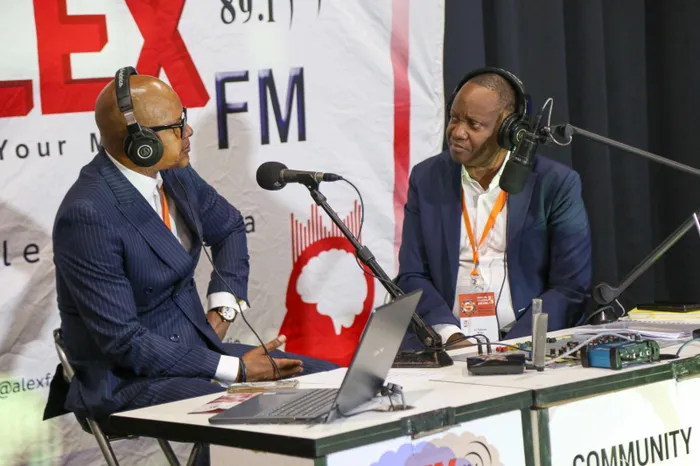 Lehlogonolo Masoga, an administrator at the Services Sector Education and Training Authority, makes a point during a radio interview.