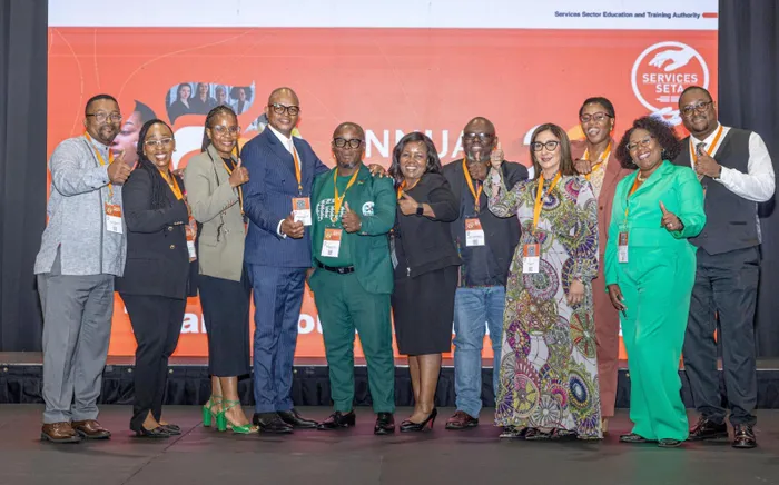 Fourth from left: Lehlogonolo Masoga, administrator at the Services Sector Education and Training Authority.